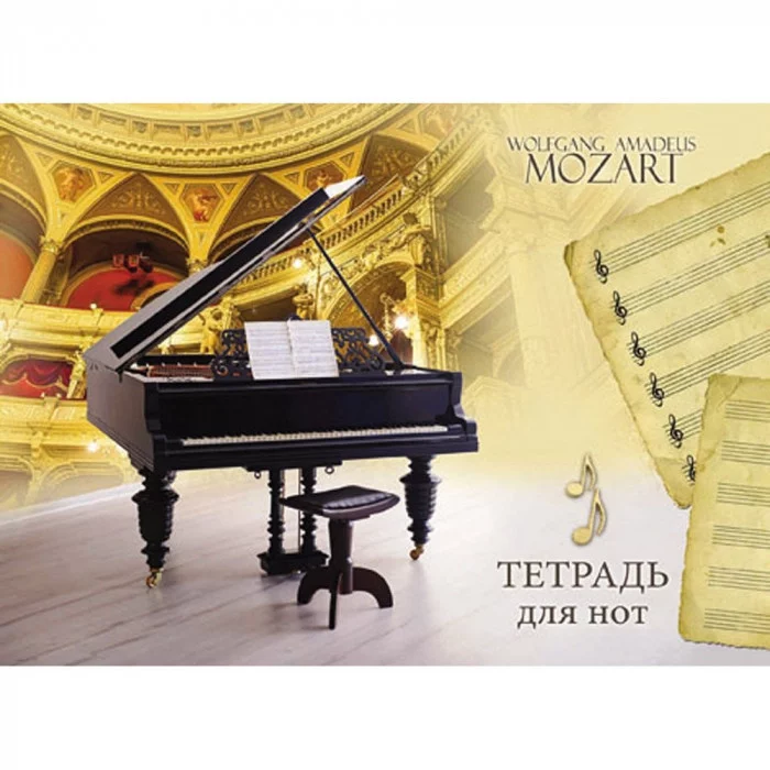 Тетрадь для нот А4, 9 л., Проф-Пресс "Черный рояль", скрепка, мелованный картон, альбомная 08-7150