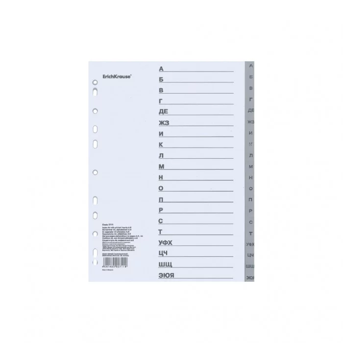 Разделитель листов пластиковый ErichKrause® 20 листов, алфавитный, A4 55900