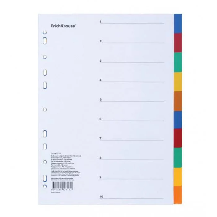 Разделитель листов пластиковый ErichKrause 10 листов по цветам A4 55904