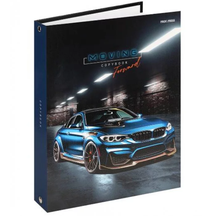 Тетрадь КЛЕТКА 80л. СИНИЙ АВТОМОБИЛЬ - 8 (80-1554), на кольцах, глянцевая ламинац, лен 80-1554