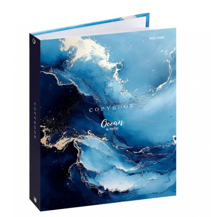 Тетрадь КЛЕТКА 80л. СИНИЙ МРАМОР (Т80-4896), на кольцах, глянцевая ламинац, лен Т80-4896