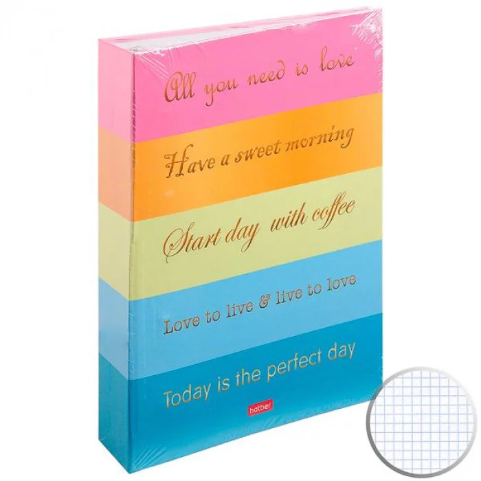 Тетрадь на кольцах 120л клетка ламин "Be happy" ассорти HATBER 120ТК5В1_22063 222221