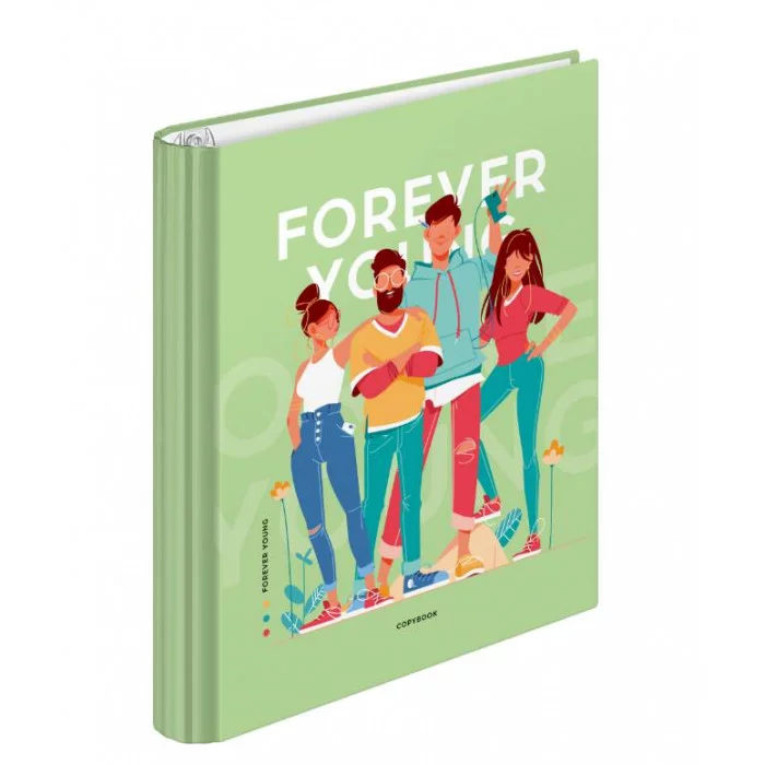 Тетрадь на кольцах ArtSpace серии «Стиль. Forever young» формата А5 (216*175 мм) – незаменимый помощник в офисе и учёбе и удобна для большого объёма записей. Внутренний блок – это 120 листов, офсетная бумага плотностью 60-65 г/м², белизна – 100%, линовка – клетка. Тетрадь имеет кольцевой механизм для быстрой смены или добавления листов, состоящий из 4 колец. Обложка изготовлена из твёрдого картона с глянцевой ламинацией и скруглённым корешком. Формат: А5 (216*175 мм); Кол-во листов: 120; Линовка: клетка; Форма корешка: скруглённая; Материал обложки: твёрдый картон.