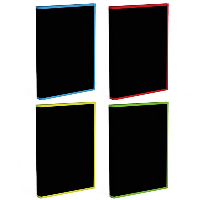 Тетрадь общая формата А4 (210х297 мм). Элегантный дизайн построен на контрасте черной внешней стороны обложки и яркой внутренней. Обложка из жесткого ламинированного картона с фактурным тиснением "лён". В блоке 80 листов в клетку. Бумага офсетная плотностью 60 г/м2. Цвет линовки - синий. Тип скрепления - кольца. Имеет индивидуальную упаковку в термоусадочную пленку.