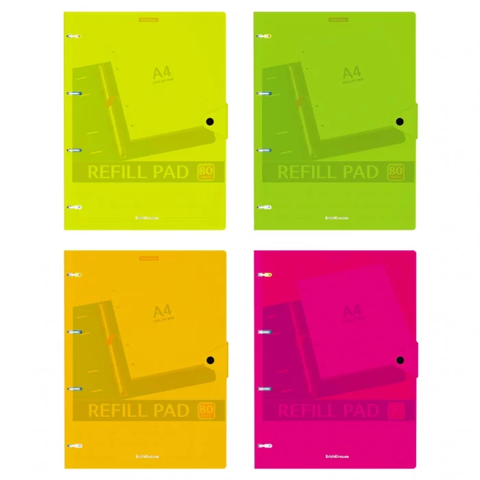 Тетрадь общая с пластиковой обложкой на кольцах ErichKrause Neon, ассорти, А4, 80 листов, клетка, на кнопке 1шт 50654