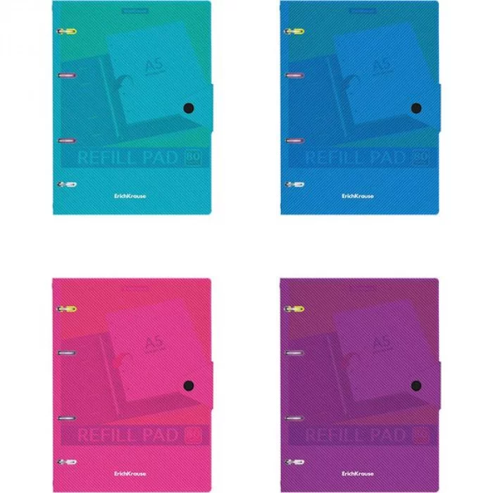 Тетрадь общая с пластиковой обложкой на кольцах ErichKrause Vivid, ассорти, А5, 80 листов, клетка, на кнопке 1шт 53146