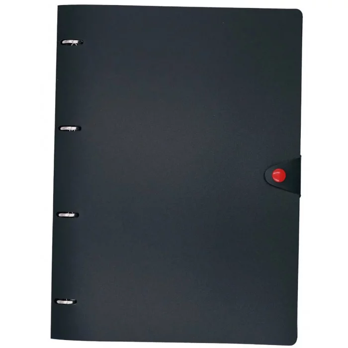 Тетрадь FAVORITE BLACK – это воплощение элегантности и практичности. Изысканный черный пластик, который защищает листы бумаги от влаги и каплей. Тетрадь на кольцах удобна в использовании, имеет сменный блок, который дает возможность добавлять новые страницы и разделы в записях. Тетрадь фиксируется на кнопку, внутренний блок всегда надежно защищен, а листы не будут теряться в ваших сумках и рюкзаках. Ощутите безупречное сочетание стиля и функциональности.