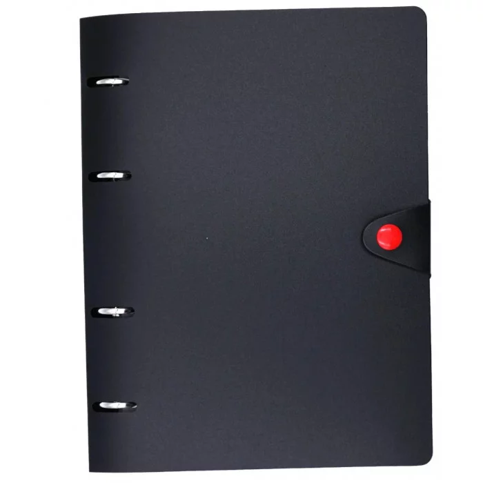 Тетрадь FAVORITE BLACK – это воплощение элегантности и практичности. Изысканный черный пластик, который защищает листы бумаги от влаги и каплей. Тетрадь на кольцах удобна в использовании, имеет сменный блок, который дает возможность добавлять новые страницы и разделы в записях. Тетрадь фиксируется на кнопку, внутренний блок всегда надежно защищен, а листы не будут теряться в ваших сумках и рюкзаках. Ощутите безупречное сочетание стиля и функциональности.