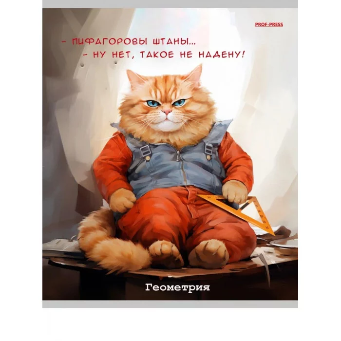 Тетрадь КЛЕТКА 48л. ГЕОМЕТРИЯ «ЖИЛ БЫЛ КОТ» (Т48-1447) стандарт, б/о TM Prof-Press Т48-1447