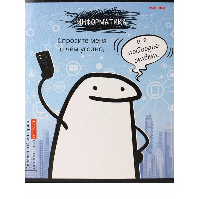 Тетрадь КЛЕТКА 48л. ИНФОРМАТИКА «Школьные мемасики» (48-9652) стандарт, тиснение холст TM Prof-Press ПП-00195950