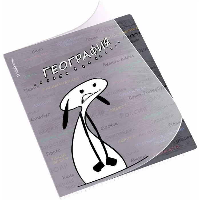 Тетрадь общая ученическая с пластиковой обложкой на скобе ErichKrause Чубрик, География, 48 листов, клетка 59475