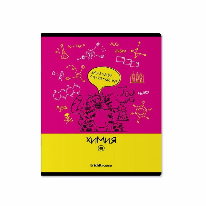 Тетрадь общая ученическая с пластиковой обложкой на скобе ErichKrause Котоформулы, ХИМИЯ, 48 листов, клетка 59509