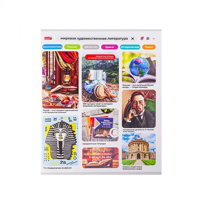 Тетрадь по Мировой художественной литературе 48 листов в клетку на скобе обложка картон мелованный "Личный профиль" блок 60г/м2 ПРОФ-ПРЕСС 48-9120