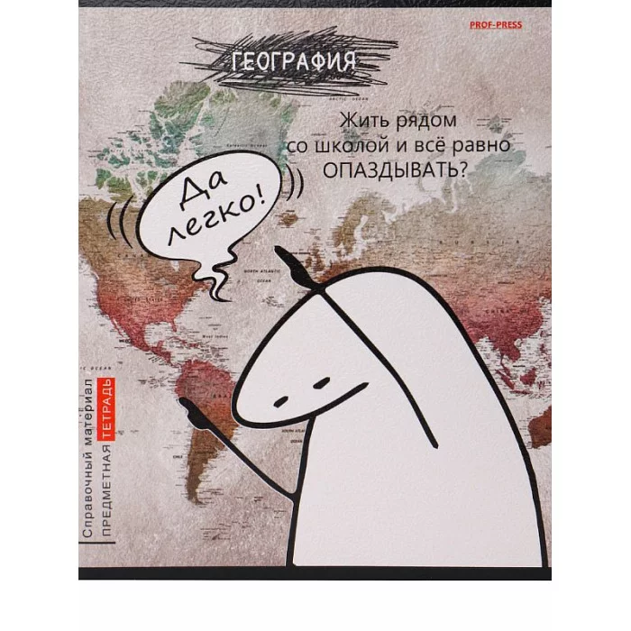 TM Prof-Press Тетрадь КЛЕТКА 48л. ГЕОГРАФИЯ «Школьные мемасики» (48-9649) стандарт, тиснение холст ПП-00195947