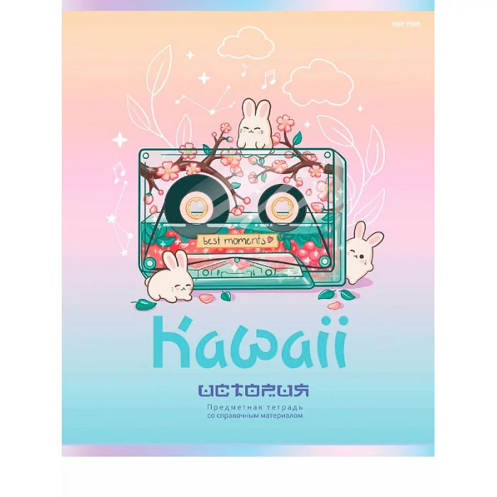 Новая серия тетрадей "KAWAII" — это серия из 16 предметных тетрадей. Внутри каждой тетради расположен справочный материал с подсказками по соответствующему школьному предмету. Дизайн выполнен в пастельных тонах, обложка изготовлена из мелованного картона с ламинацией soft-touch и глянцевым выборочным лаком. Внутренний блок: 48 листов, линовка: 14 артикулов - клетка с полями и 2 артикула - линия с полями. В комплект входят 12 тетрадей по следующим предметам: алгебра, английский язык, биология, география, геометрия, информатика, история, обществознание, физика, химия, литература, русский язык. Упаковано в картонную бандероль + ПЭТ.