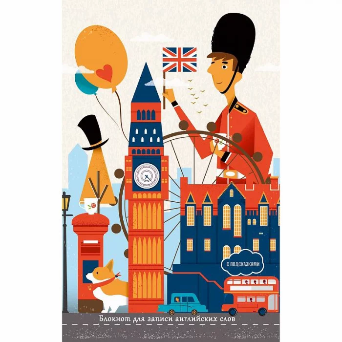 Блокнот для записей иностранных слов А5, 64л. Скрепка. Обл: мел.картон, матовая ламинация, выборочный лак. Бумага белый офсет 60г/м2. С подсказками. "Добро пожаловать в Лондон"