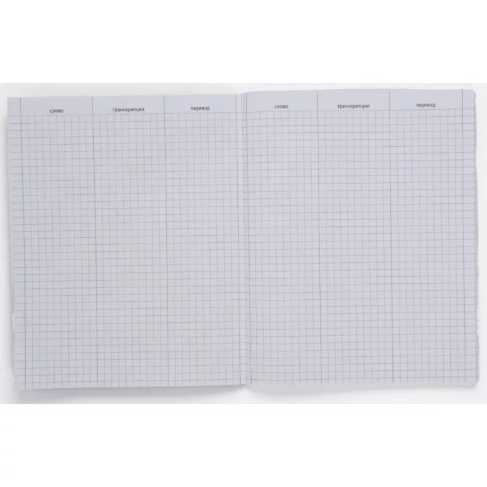 Тетрадь для записей иностранных слов Listoff – незаменимый помощник для школьников, студентов, офисных сотрудников в изучении иностранных языков. Удобная разметка страницы в клетку поделена на три столбца: для записи слова, его транскрипции и перевода. Обложка покрыта глянцевой ламинацией, которая защищает изделие от влаги и повреждений и придает яркий насыщенный цвет иллюстрации. Классический формат А5. Внутренний блок: 48 листов, белая офсетная бумага 60гр/м, спец. линовка. Крепление:скрепка.