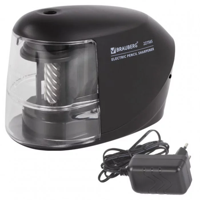 Электрическая точилка BRAUBERG "ORIGINAL" со съемным контейнером для сбора мусора и прямым лезвием, работает от сети. Предназначена для затачивания деревянных и пластиковых карандашей диаметром 6-8 мм. Корпус - из высококачественного пластика. Точилка имеет отверстие диаметром 8 мм для заточки стандартных чернографитных и цветных карандашей. Спиралевидное лезвие из высококачественной углеродистой стали гарантирует высокую производительность. Такое лезвие не требует замены или заточки. Предохранитель обеспечивает защиту от включения точилки при снятом контейнере. Подходит как для чернографитных, так и для цветных карандашей. Имеет противоскользящее основание. Механизм приходит в движение при помощи электричества от сети и оснащен предохранительным клапаном. Затачивание начинается автоматически после помещения карандаша внутрь точилки. Для правильной заточки необходимо удерживать карандаш от вращения. Уже через несколько секунд он идеально заточен и готов к использованию. Дизайн: офисный. Серия: Original. Питан