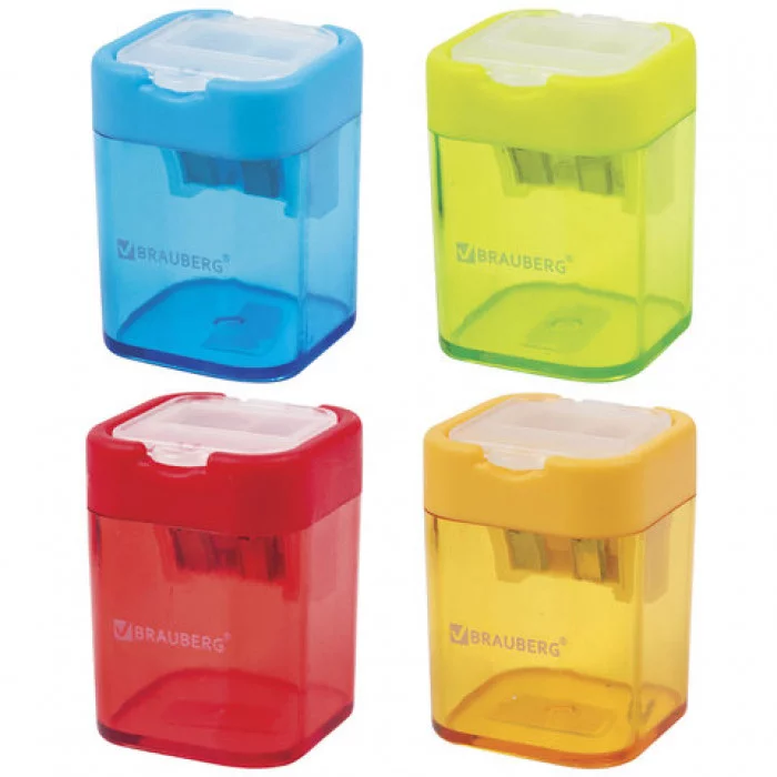 Точилка BRAUBERG PEAK с контейнером, пластиковая, прямоугольная, 2 отверстия, цвет ассорти, 226945