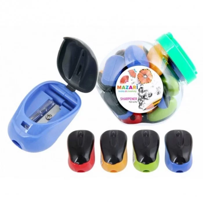 Точилка M-6655 пластиковая FORTE, с контейнером, ассорти 4 цвета, в банке 24 штуки M-6655