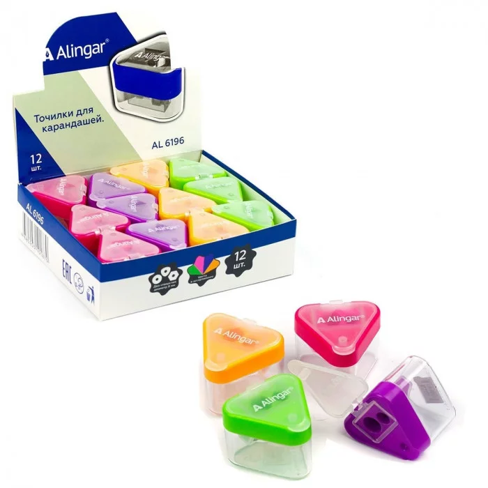 Точилка пластиковая Alingar, 2 отверстия, контейнер, ассорти AL6196