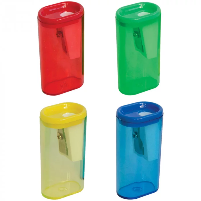 Точилка с контейнером пластиковая, ассорти, с одним отверстием для заточки