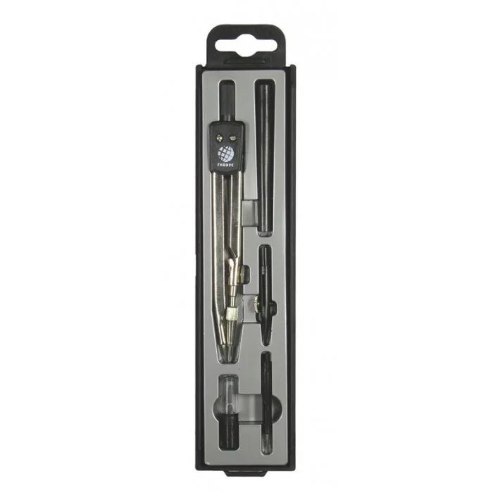 Набор чертежный, серия «Junior». В наборе 5 предметов: циркуль чертежный, длина 125 мм, нержавеющий металл; пенал с запасным грифелем, ручка, рейсфедерная вставка и игольная вставка. Упаковка: пластиковый пенал с европодвесом.