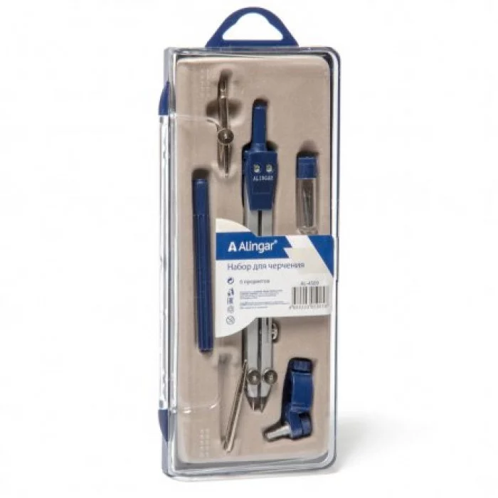 Готовальня Alingar 6 предметов пластиковый футляр 1шт AL4509