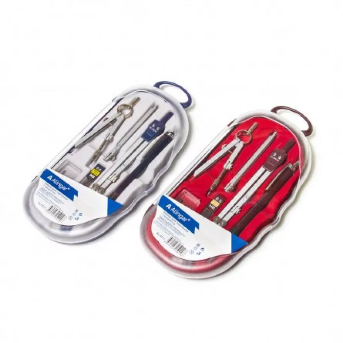 Готовальня Alingar, 7 предметов, металлический циркуль 105 мм,, пластиковый футляр, европодвес AL4511