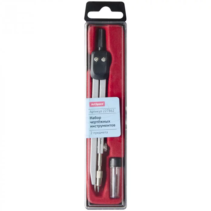 Набор в пластиковом пенале с европодвесом - 2 предмета (циркуль и запасной грифель). Товар предназначен для чертежно-графических работ.