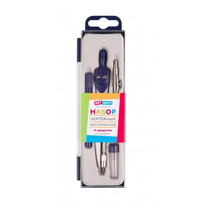 Готовальня ArtSpace, 4 предмета, циркуль 115мм, пластиковый футляр 260695