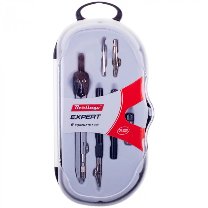 Готовальня Berlingo "Expert", 6 предметов, циркуль 135мм, пластиковый футляр BERLINGO_ 231678