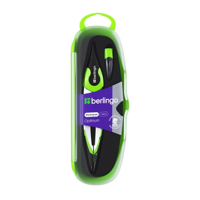 Готовальня Berlingo "Optimum", 2 предмета, циркуль 135мм, пластиковый футляр, зеленый 314452