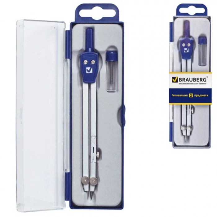 Готовальня BRAUBERG "Student Oxford", 2 предм: циркуль 140мм, грифель, пенал с подв., 210323