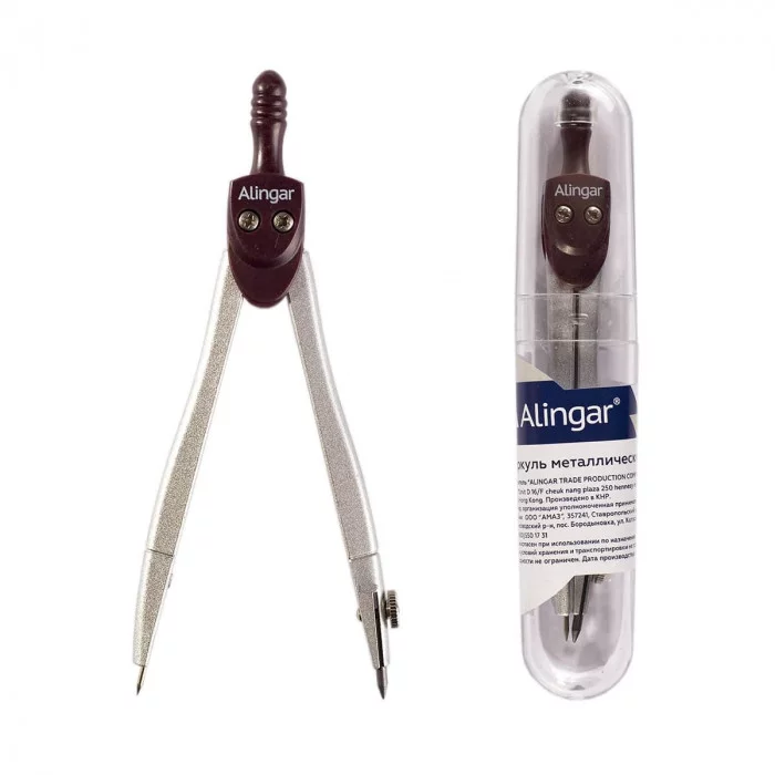 Циркуль Alingar, металлический 115 мм, грифель, пластиковый футляр, коричневый AL323/1
