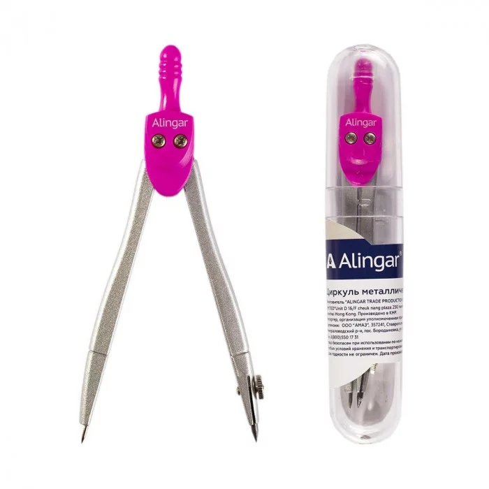 Циркуль Alingar, металлический 115 мм, грифель, пластиковый футляр, розовый AL323/4