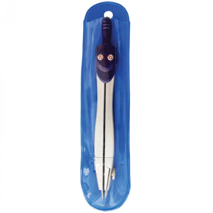 Циркуль115 мм, упакован в ПВХ чехол, без сменного грифеля, выполнен из сплава легких металлов