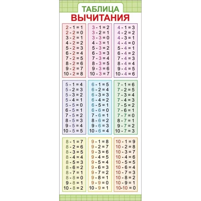 Магнитная закладка-шпаргалка со справочной информацией "Таблица вычитания" для лучшего запоминания темы. Идеальна для учебника по математике.