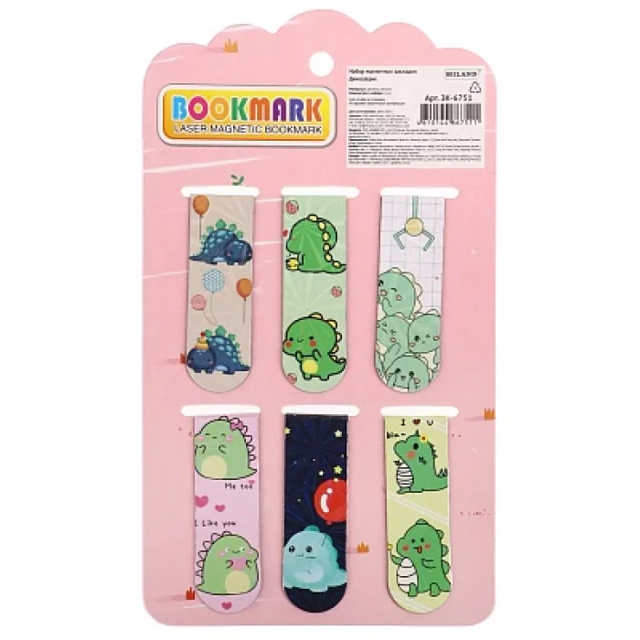 Набор магнитных закладок Динозаврик, 6 шт, в ассортименте ЗК-6751 461-0-144-86751-1