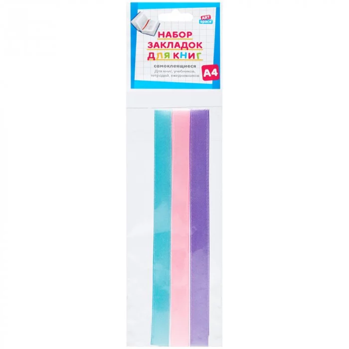 Набор закладок для книг формата А4 (ляссе с клеевым краем), ArtSpace "Пастель" (3 широкие ленты) 316213