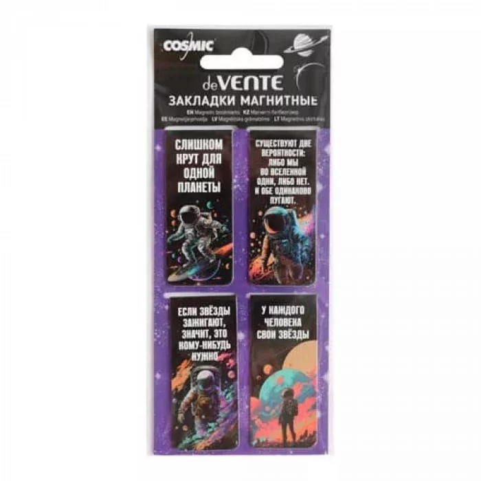 Закладка для книг магнитная 25*56.6мм "Cosmic" 4шт/уп е/п DEVENTE 8065407 645297