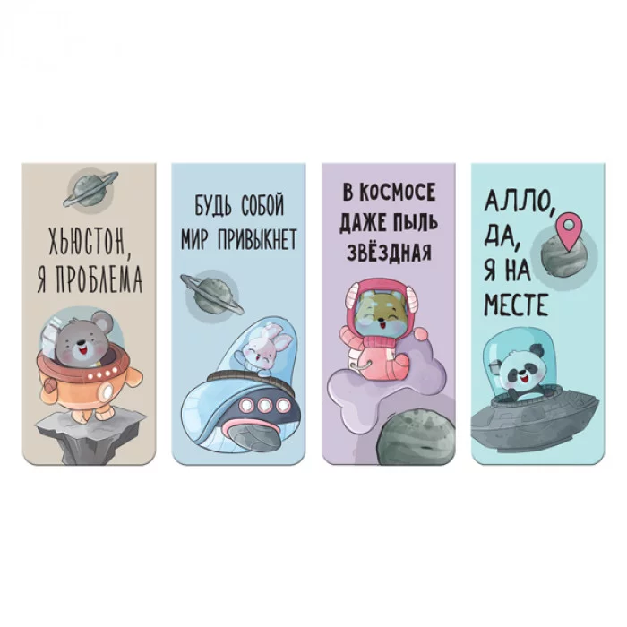 Закладка для книг магнитная 25*56.6мм "Cosmic Jokes" 4шт/уп е/п DEVENTE 8065229