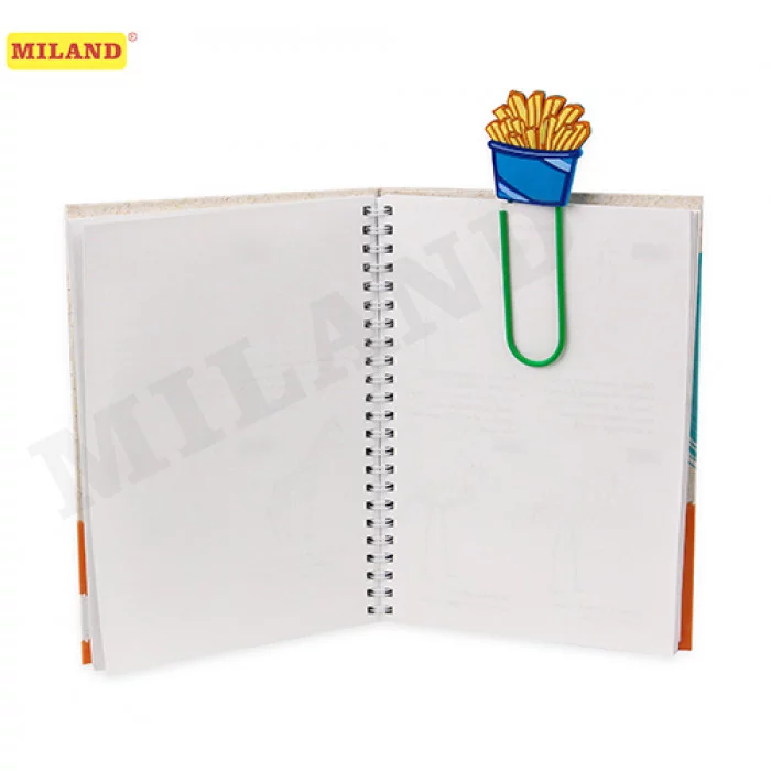 Закладка-скрепка MILAND "Картошка фри". Удобное и полезное приспособление для тех, кто не хочет заблудиться в страницах книг, журналов, тетрадей, дневников, учебников, школьных пособий, ежедневников, альбомов и т.д. Поможет быстро найти нужную страницу, сохраняя бережное и аккуратное отношение к полиграфической продукции. Представляет собой большую канцелярскую скрепку овальной формы, в цветном виниловом покрытии, с декоративным фигурным элементом. Инструмент очень прост в использовании, легко крепится к листу и не выпадет, даже если уронить книгу. А ещё такую закладку можно использовать для скрепления любых бумажных элементов между собой, украшения фотозоны, подарков и букетов. Яркие и привлекательные закладки-скрепки создают уютную атмосферу и хорошее настроение во время чтения книги, работы с учебником.