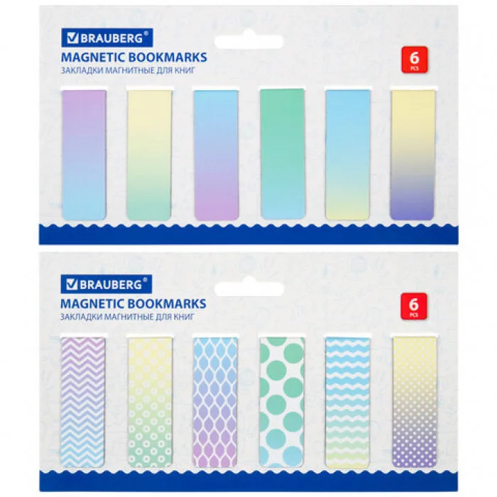 Закладки для книг МАГНИТНЫЕ, "GRADIENT", набор 12 шт., 60x20 мм, BRAUBERG, 113170