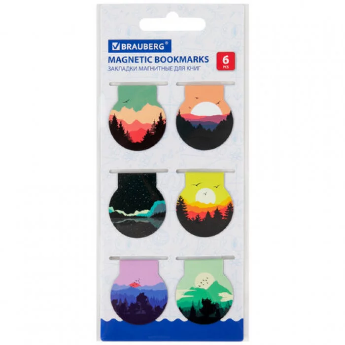 Закладки для книг МАГНИТНЫЕ, "SUNSET", набор 6 шт., 32х28 мм, BRAUBERG, 113169