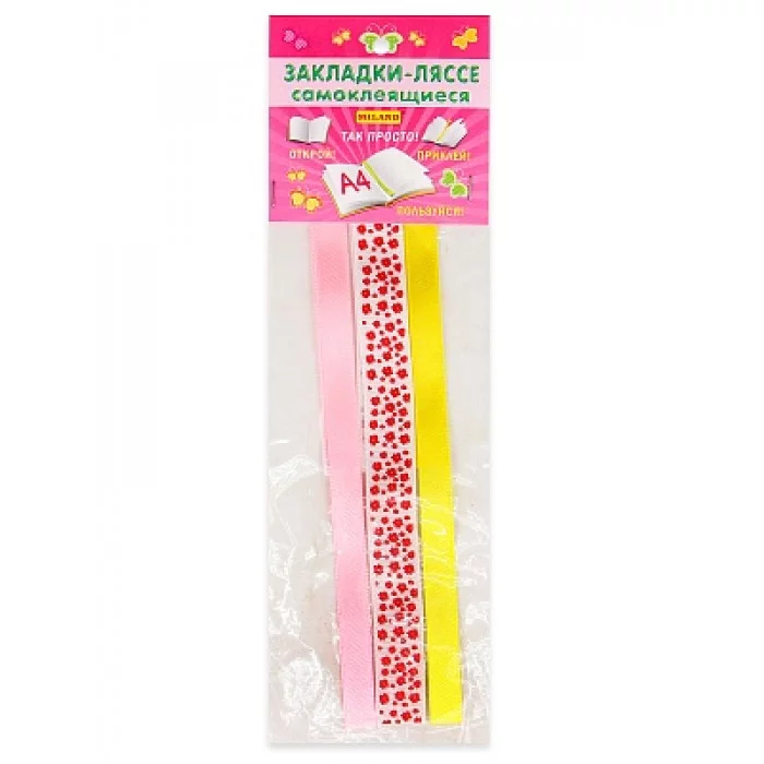 Закладка-ляссе — одна из самых удобных закладок для учебников, книг и тетрадей. Она очень проста в использовании: липкую сторону нужно приклеить на заднюю часть обложки и плотно прижать. Длина расчитана на формат А4.