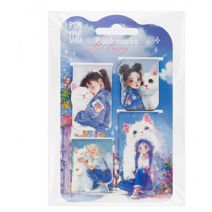 Закладки магнитные для книг, 4шт., MESHU "Be happy", матовая ламинация 382178