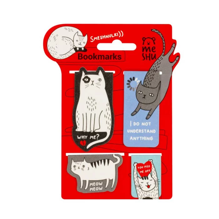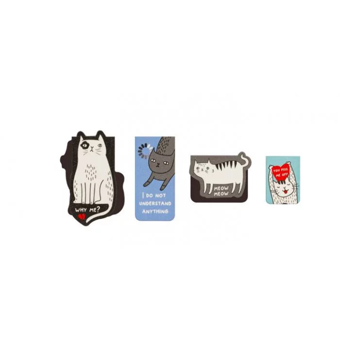 Магнитные закладки MESHU "Funny cat" помогут запомнить и быстро найти нужную страницу книги. В набор входят четыре аксессуара с разными дизайнами.