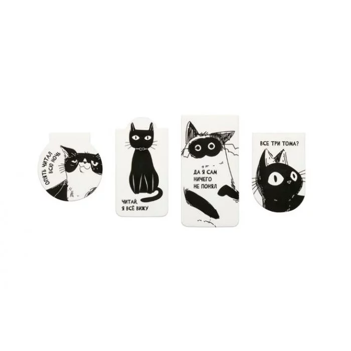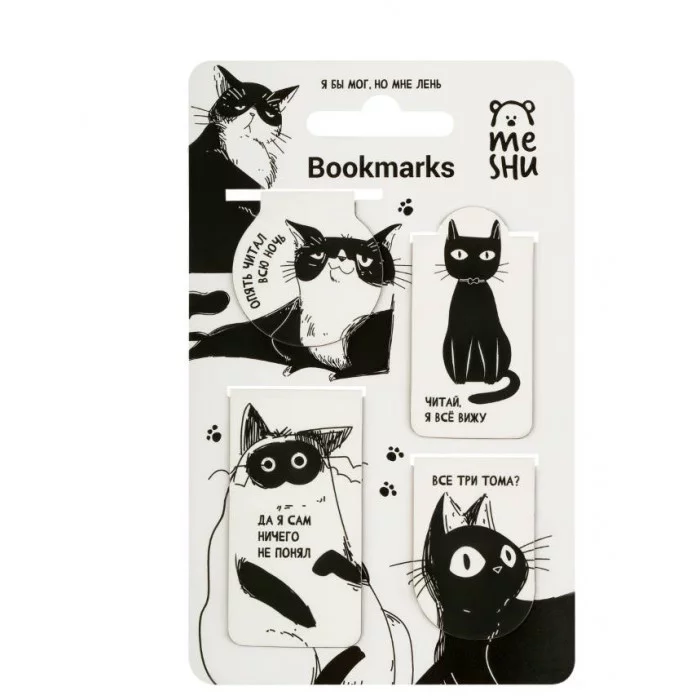 Магнитные закладки MESHU "Meme cat" помогут запомнить и быстро найти нужную страницу книги. В набор входят четыре аксессуара с разными дизайнами.