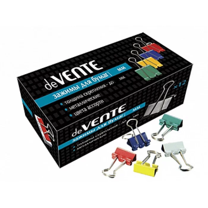 Зажимы цветные 19мм 12шт/уп DEVENTE 4131314 383607